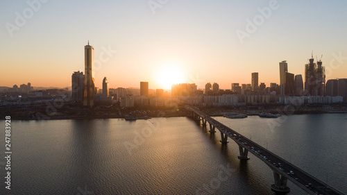 Naklejka premium Seoul taken with a drone, Korea. bridges across the river