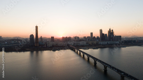 Fototapeta premium Seoul taken with a drone, Korea. bridges across the river