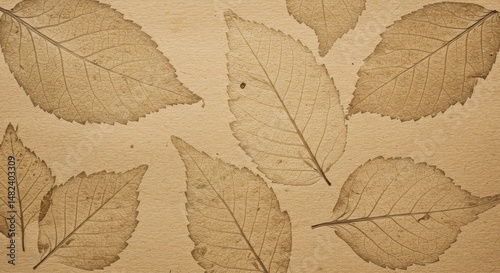 © Mikail, Obraz premium Sepia leaves lay artistically on parchment