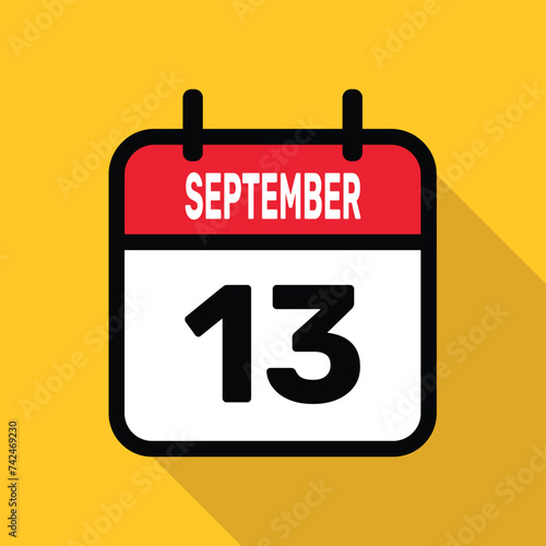 Fototapeta premium September 13. Calendar icon. Flat vector illustration with long shadow.