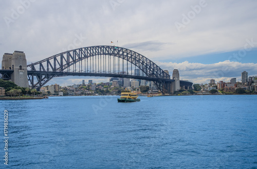 Naklejka premium 22 September 2025 Ferry on Sydney Harbour with harbour bridge in the...
