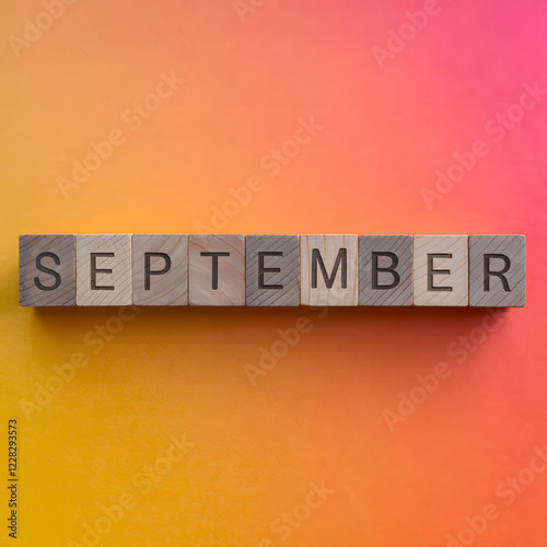 © Generative Stock, Obraz premium September Month Word Wood Blocks