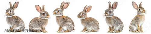 Fototapeta premium Sequence of adorable rabbits in various poses and side views Isolated...