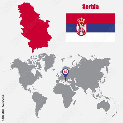 © stas111, Fototapeta premium Serbia map on a world map with flag and map pointer. Vector illustration