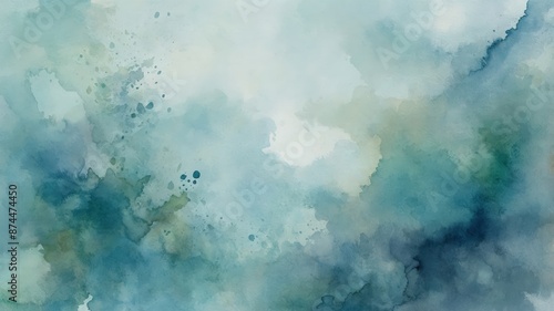 © Adam, Fototapeta premium Serene abstract watercolor art in blue and green tones, featuring fluid gradients and soft, expressive splashes.