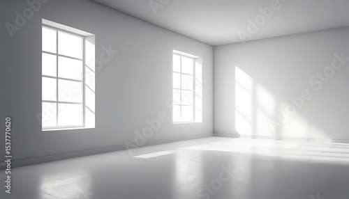 Fototapeta premium Serene all-white room with sunlight streaming through multiple windows