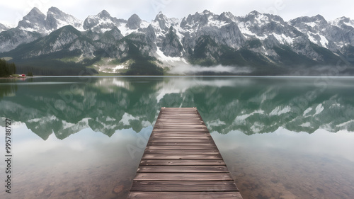 Fototapeta premium Serene Alpine Lake View with Reflection