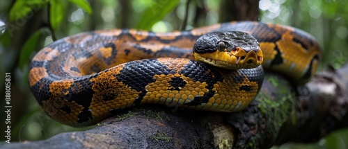 Fototapeta premium Serene Anaconda Majestically Coiled on Amazon Rainforest Tree Branch