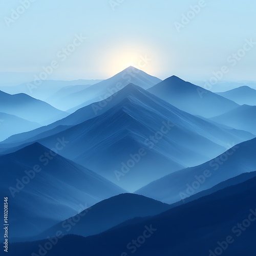 © Shyamal, Fototapeta premium Serene and Futuristic Blue Staircase with Soft Glow and Curved Walls