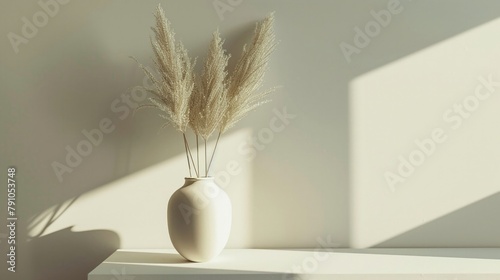 Naklejka premium Serene and minimalist composition featuring a vase with pampas grass,...