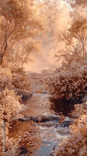 Naklejka premium Serene and peaceful forest stream with warm tones