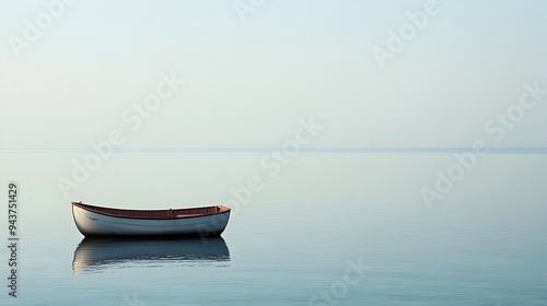 Naklejka premium Serene and tranquil scene of a solitary boat floating on a calm empty sea...