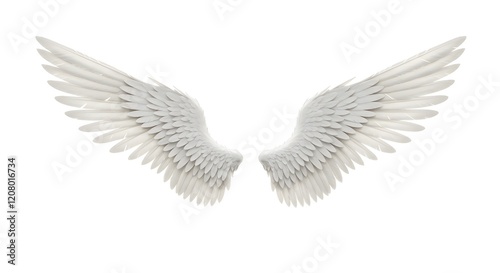 © Marrium, Naklejka premium Serene Angel Wings Against White Background