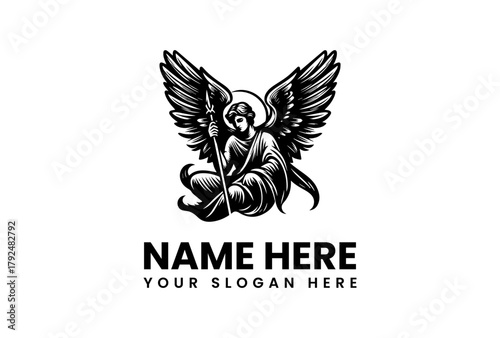Obraz premium Serene Angelic Figure Vector Logo Illustration - Majestic Winged Being Emblem