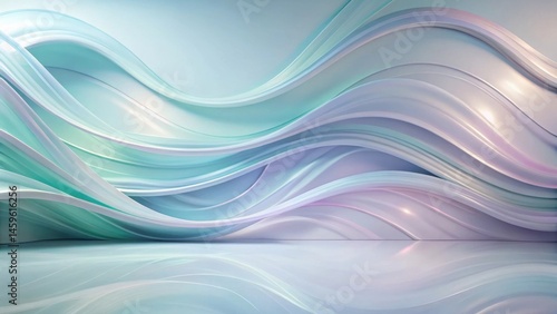 Fototapeta premium Serene Aqua and Pearl Waves Abstract Background Featuring Soft, Flowing Curves and a Reflective Floor