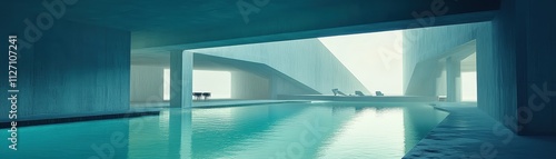 Naklejka premium Serene Aquatic Sanctuary: Modern Architecture Reflecting in a Tranquil Pool