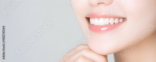 © StockPick, Obraz premium Serene Asian Woman with Gentle Smile and Glowing Skin - Close-Up Beauty Shot Showcasing Smooth Skin Texture in Soft Lighting