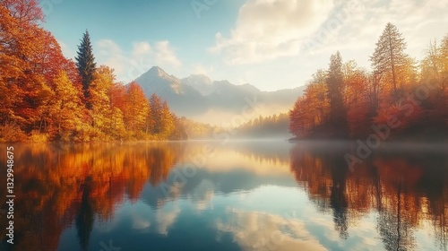 © Sakdecha, Fototapeta premium Serene Autumn Landscape with Reflections