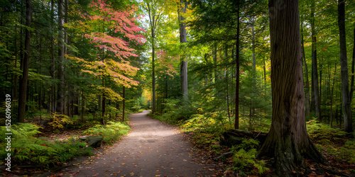 © Awildbulbasaur, Obraz premium Serene Autumn Pathway in a Woodland Forest