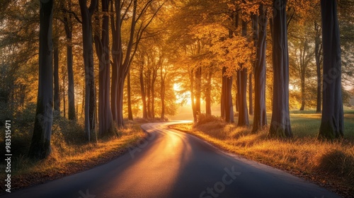 © Damerfie, Fototapeta premium Serene Autumn Pathway Through Golden Forest