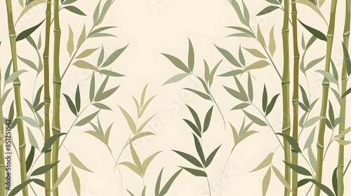 Obraz premium Serene Bamboo Border with Muted Greens and Repeating Flat Pattern Design