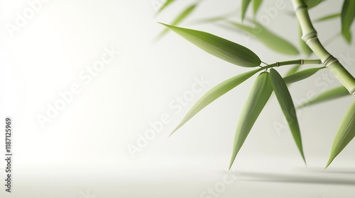 Fototapeta premium Serene Bamboo Branch with Lush Green Leaves Against a White Background