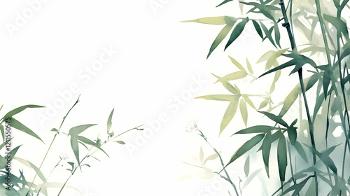 Fototapeta premium Serene bamboo forest painting; tranquil Asian landscape, perfect for...