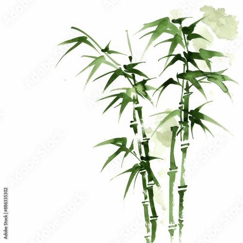 Obraz premium Serene Bamboo Grove in Japanese Ink Painting Style on White Background