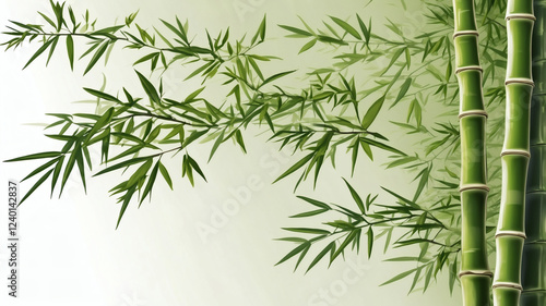 Naklejka premium Serene bamboo grove, lush green leaves and sturdy stalks creating a tranquil...