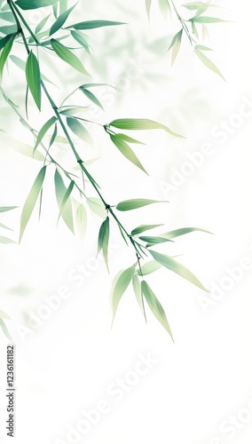 © adinuranjaya, Obraz premium Serene Bamboo Leaves Botanical Illustration Nature Background