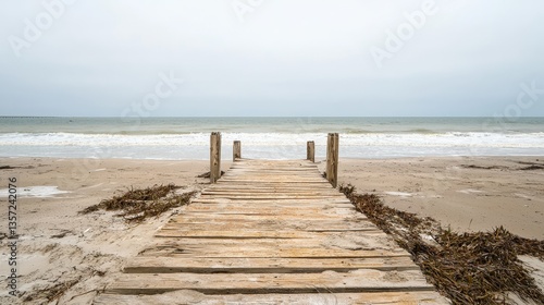 Fototapeta premium Serene beach boardwalk, coastal tranquility
