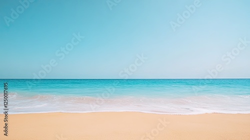 © Rose, Obraz premium Serene beach landscape showcasing soft waves lapping against golden sand under a clear blue sky
