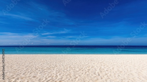 Fototapeta premium Serene beach landscape with pristine white sand and clear blue ocean under a...