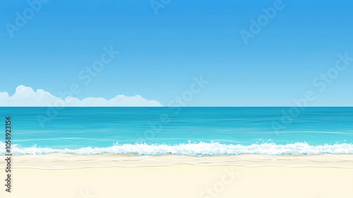 Obraz premium Serene Beach Scene with Gentle Waves and Clear Sky