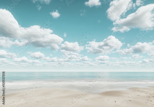 Fototapeta premium Serene Beach Scene with Gentle Waves and Fluffy White Clouds