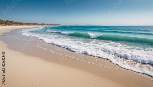 Fototapeta premium Serene Beach Scene with Turquoise Waves and White Sand