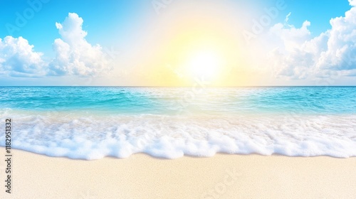 © Fragton, Fototapeta premium Serene Beach Sunset Tranquil Ocean Waves on Sandy Shore