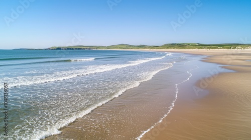 Obraz premium Serene Beach with Gentle Waves Under Clear Blue Sky