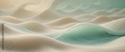 © Chainarong, Obraz premium Serene Beige and Mint Green Abstract Wave Art Calming Minimalist Illustration