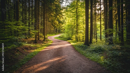 © Bionic, Fototapeta premium "Serene Bicycle Path Surrounded by Nature - Eco-Friendly Transportation in a Peaceful Setting"