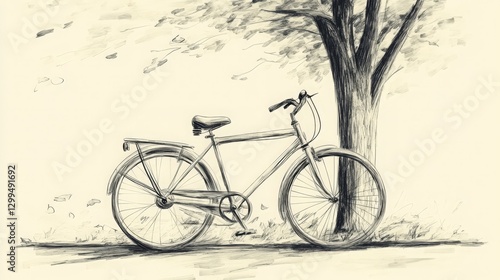 © Khaisan, Obraz premium Serene Bike Ride: An Artistic Rendering of Bicycle Parked by a Tree