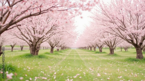 Fototapeta premium Serene Blossom Pathway Through Vibrant Cherry Blossom Trees