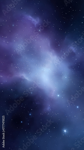 Fototapeta premium Serene blue and purple nebula glowing in vast cosmos. celestial background of distant galaxy filled with star formations creating sense of wonder and mystery