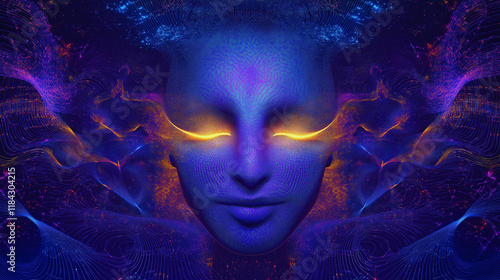Fototapeta premium Serene Blue Face in a Cosmic Digital Art
