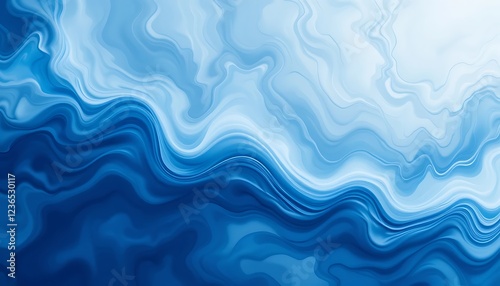 Fototapeta premium Serene Blue Liquid Marble: Abstract Swirling Waves Artwork