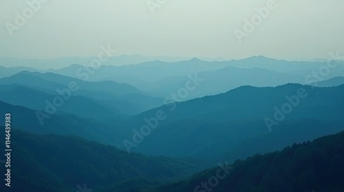 © Alfath, Fototapeta premium Serene blue mountain range landscape.