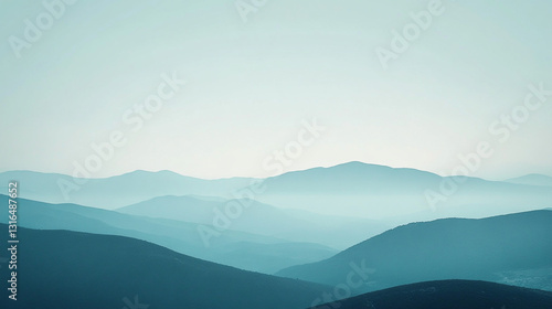 Fototapeta premium Serene blue mountain range landscape peaceful misty view sky art calm haze...