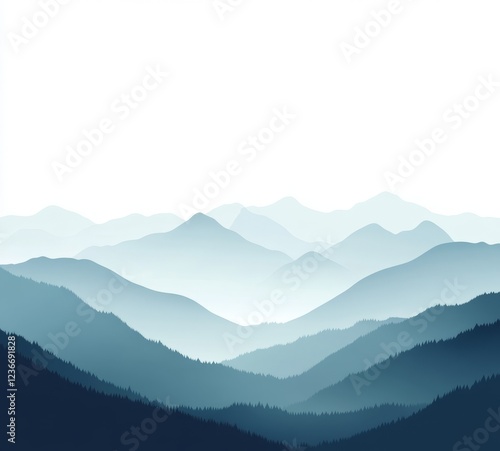 © artwiyanastudio, Obraz premium Serene Blue Mountain Range, Misty Sky, Panoramic View, Nature Poster
