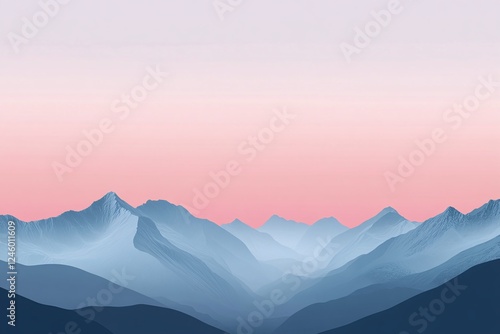 Fototapeta premium Serene Blue Mountain Ranges Against Soft Pink Sky in Minimalist Landscape at...