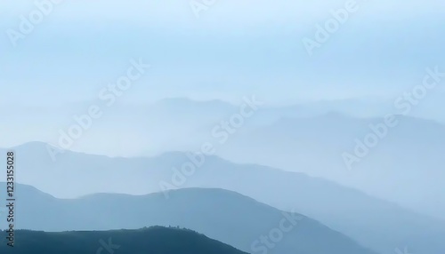 © rony, Obraz premium Serene Blue Mountains Under a Hazy Sky